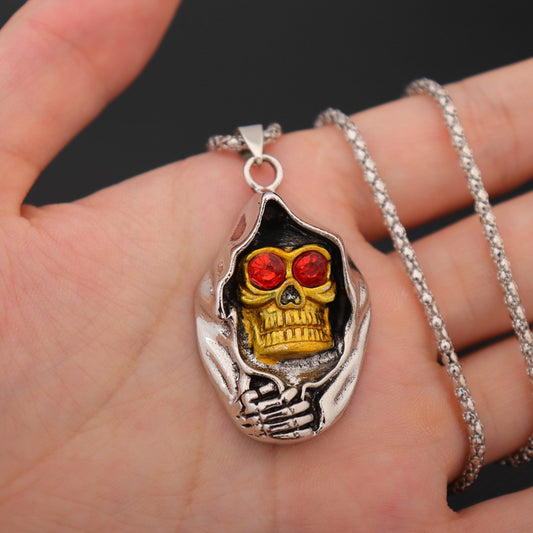 1pc Retro Skull Pendant Necklace, Men's Fashion Punk Ghost Head Necklace