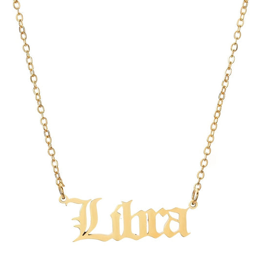 12 Zodiac Sign Charm Old English Letter Necklace Adjustable