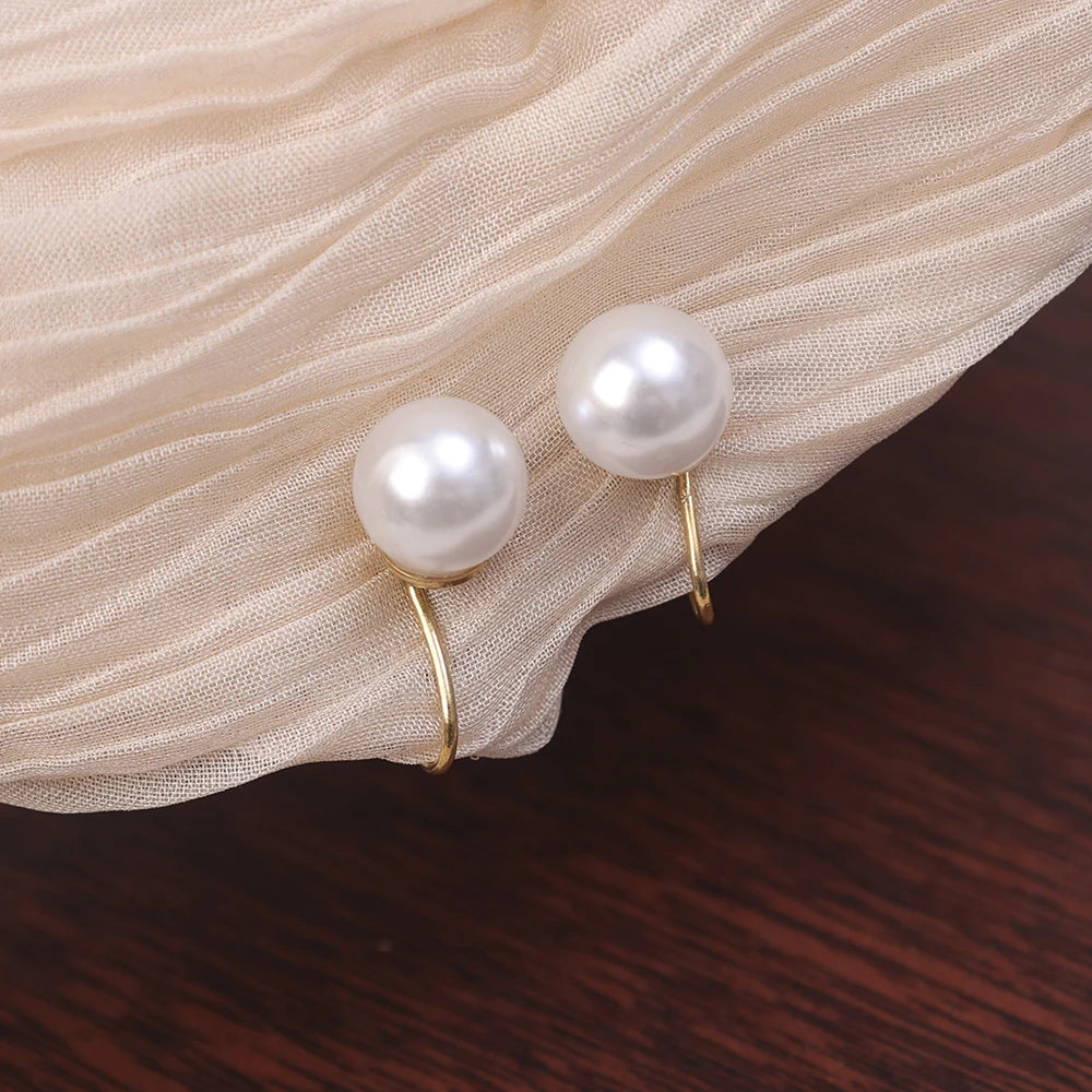 8/10/12/14mm Korean Fashion Pearl Clip Earrings for Women Girls Vintage Golden Ear Cuff Clip Without Pierced Ear Cuff Jewelry