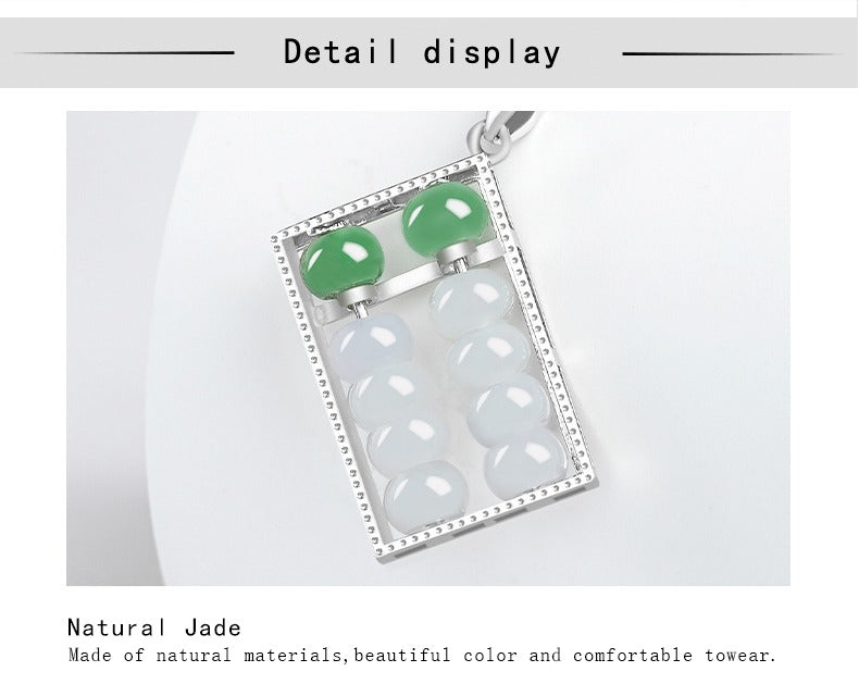 Authentic Jade Abacus Necklace Natural Jadeite An abacus Pendant S925 silver inlay Cubic Zirconia Chinese Round Type A Jadeite Pendant