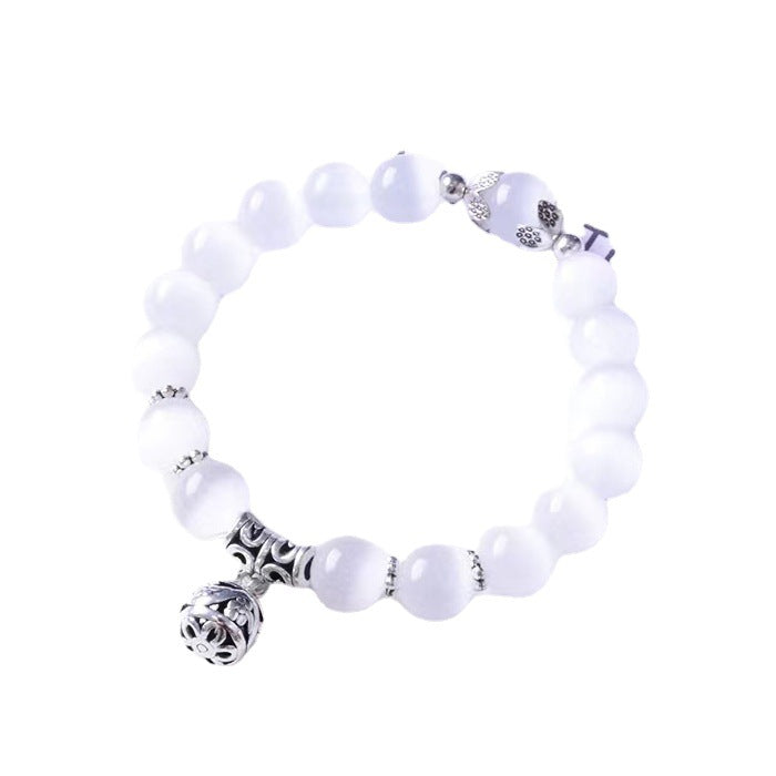Exquisite Ball Cat's Eye Crystal Single Layer Beaded Bracelet Retro Silver Ball Handmade Transparent Temperament Stone Bracelet