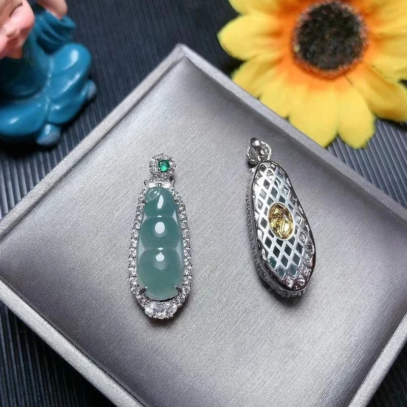 Natural dangerous material Blue Water Jade sauteed green beans Fu Dou pendant copper Jade women's fashion pendant