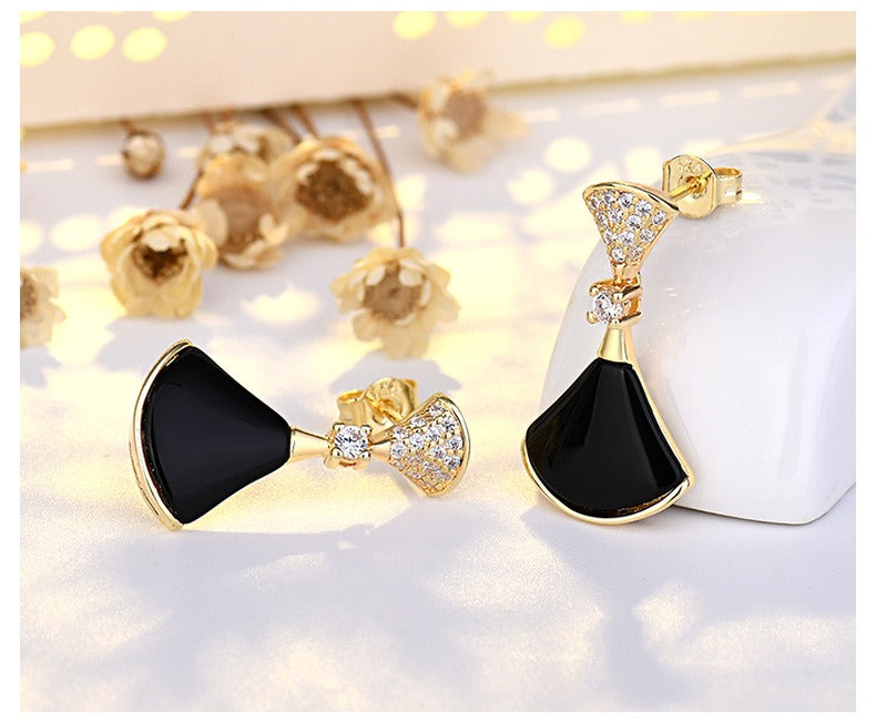Timeless Appeal: The classic fan-shaped design and black agate gemstone ensure these earrings never go out of style.