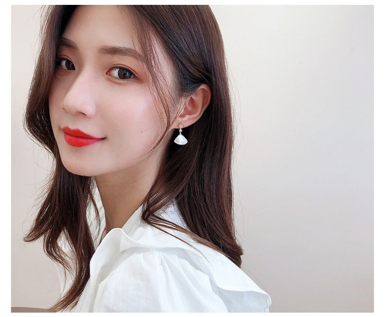 S925 Sterling silver 18K Gold Plate earrings fan-shaped Fritillaria red agate mini skirt earring hypoallergenic ear stud